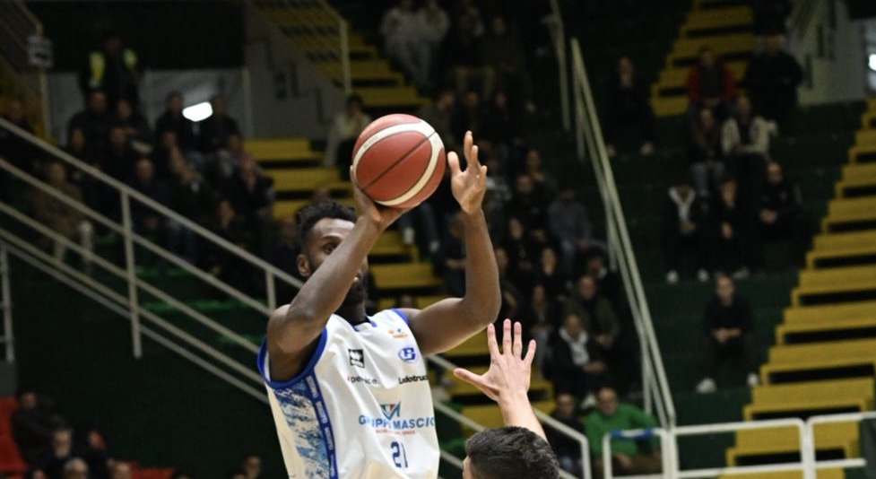 In avvio coach Finelli deve rinunciare a Giuri, infortunato dell’ultima ora, e in quintetto c’è Maspero con Cerella, Marini, Lombardi e Marcius. Martino parte con Valentini, Sanford, Pollone, Adrian e Benvenuti. L’avvio è un uno-contro-tutti: l’ex Marini ne mette 13 e il tabellone indica 15-12 Gruppo Mascio. I lunghi ospiti controllano i rimbalzi ottenendo secondi tiri e alla prima sirena è 17-22 ospite.