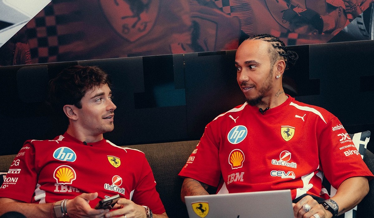 Leclerc e Hamilton in un momento di pausa a Melbourne (credits: Scuderia Ferrari)